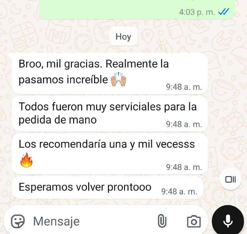 Nuestro plan familiar es ideal para desconectarse del estrés y disfrutar al aire libre con quienes más amas. Espacios amplios, fogata nocturna y libertad para compartir entre papás, niños y abuelitos.